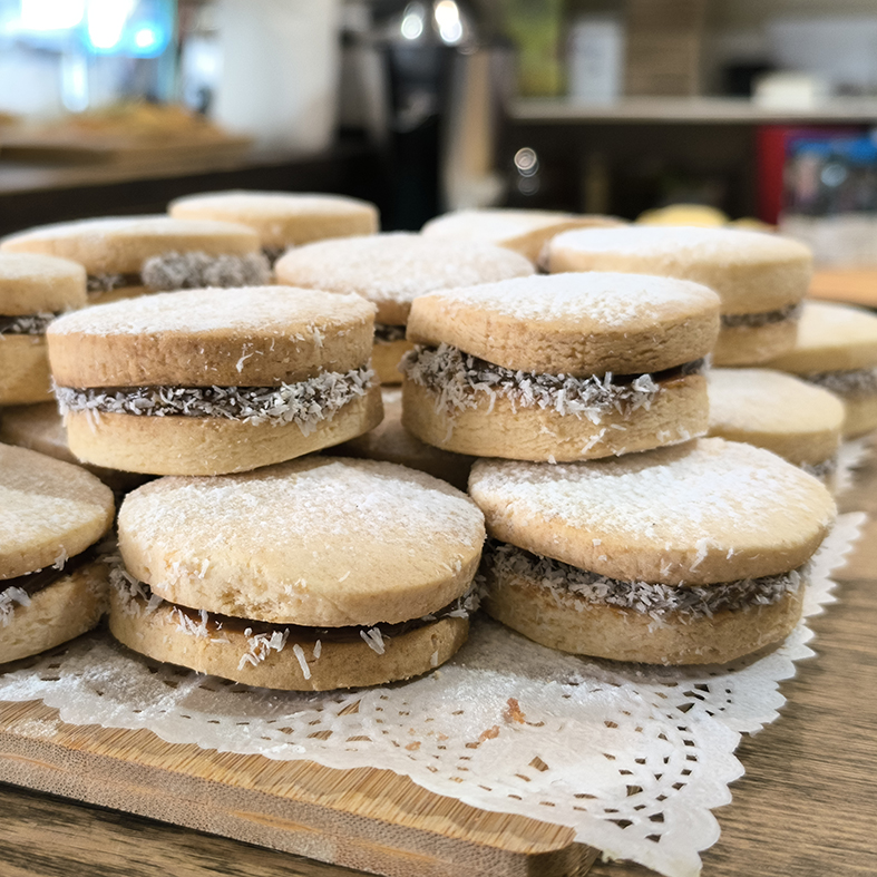 Especificaciones de producto: – Cada pack contiene 6 alfajores. – Ingredientes: harina de maíz, harina de trigo, impulsor, yema de huevo, mantequilla, azúcar blanco, esencia de vainilla.